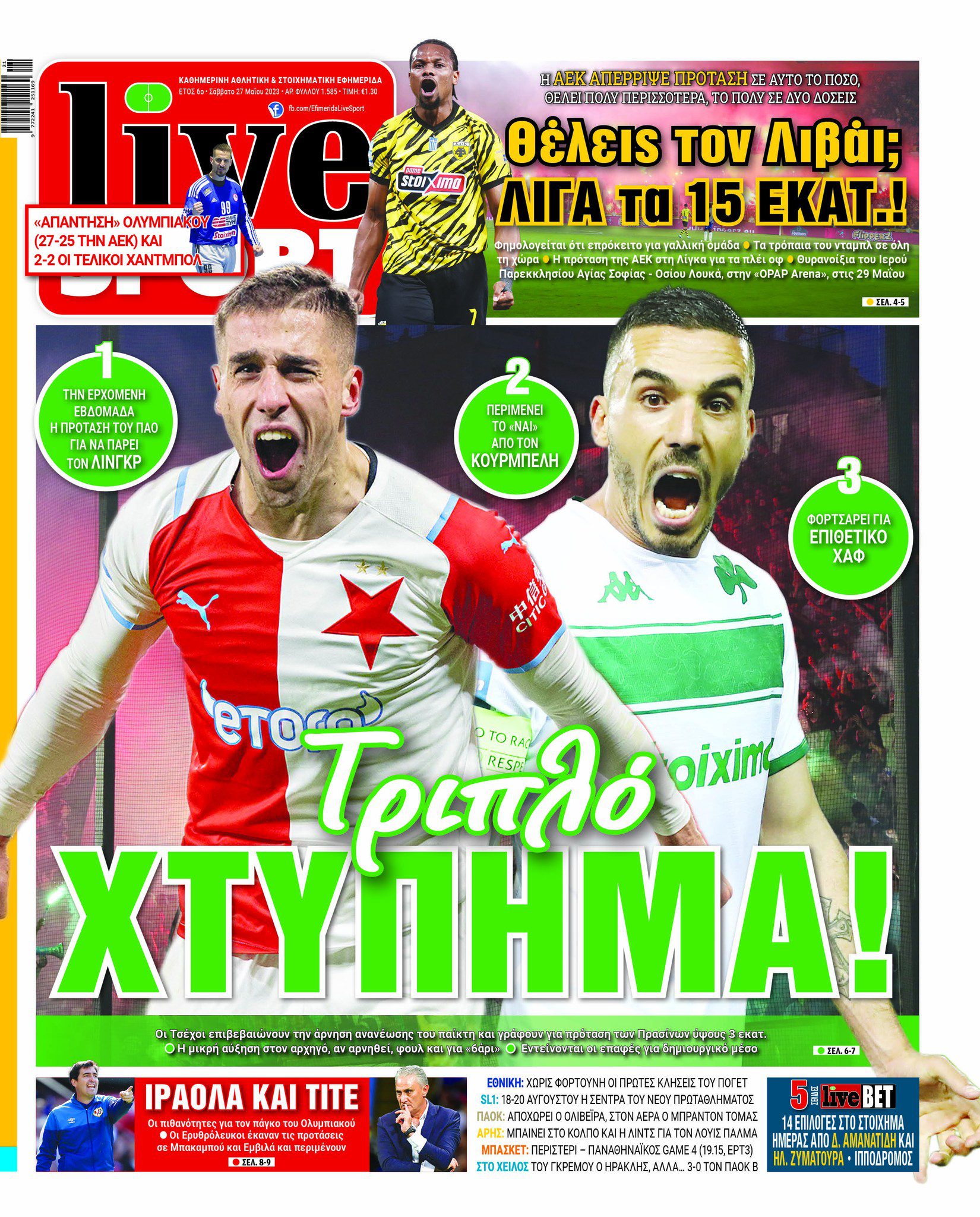 Πρωτοσέλιδα αθλητικών εφημερίδων για το Σάββατο 27 Μαΐου 2023. Δείτε αναλυτικά τι αναφέρουν στη… βιτρίνα τους οι εφημερίδες.
