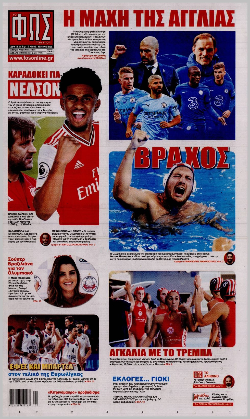 Δείτε τα αθλητικά πρωτοσέλιδα για το Σάββατο 29 Μαΐου 2021.