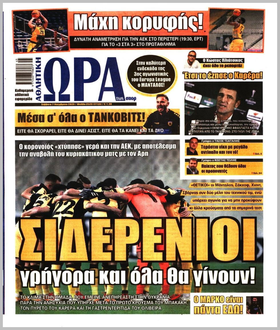 Πρωτοσέλιδα για το Σάββατο 7 Νοεμβρίου 2020