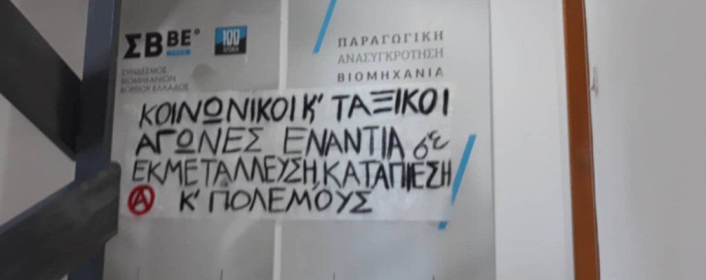 Τα μέλη της αναρχικής ομάδας κρέμασαν πανό και πέταξαν τρικάκια με συνθήματα. Μεταξύ άλλων, αυτά έγραφαν «πόλεμο στον πόλεμο των αφεντικών, καμία αλληλεγγύη στα αφεντικά».