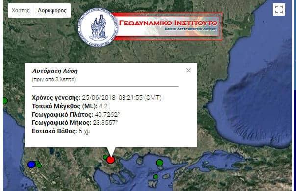 Το εστιακό βάθος εντοπίζεται στα 5 χλμ, ενώ το επίκεντρο ήταν 33 χιλιόμετρα βορειοανατολικά της Θεσσαλονίκης.