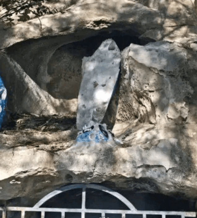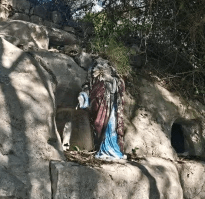 Πάνω από τη είσοδο του σπηλαίου υπήρχε ένα άγαλμα του Χριστού και ένα της Παναγίας, τα οποία πριν μερικές μέρες βρέθηκαν αποκεφαλισμένα, μαρτυρώντας μια ξεκάθαρη πράξη βεβήλωσης που είχε ως σκοπό τον εκφοβισμό των χριστιανών και την κατάπνιξη της θρησκευτικής ελευθερίας τους. Η πράξη μίσους αποδίδεται σε φανατικούς μαχητές της Συριακής Κυβέρνησης (HTS) (Hay’at Tahrir al-Sham), σε συνεργασία με άλλους ισλαμοφασιστικούς πυρήνες που δρουν στην περιοχή.