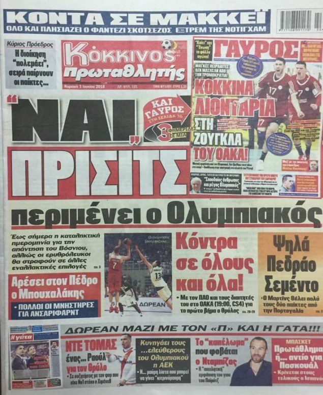 Δείτε τα πρωτοσέλιδα του αθλητικού Τύπου, της Κυριακής 3 Ιουνίου