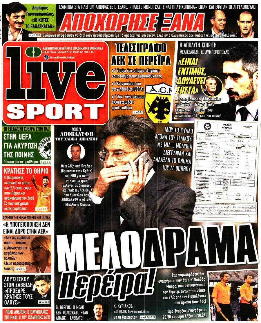 Δείτε τι αναφέρουν τα αθλητικά πρωτοσέλιδα της χώρας, για την Πέμπτη 16 Μαΐου 2019