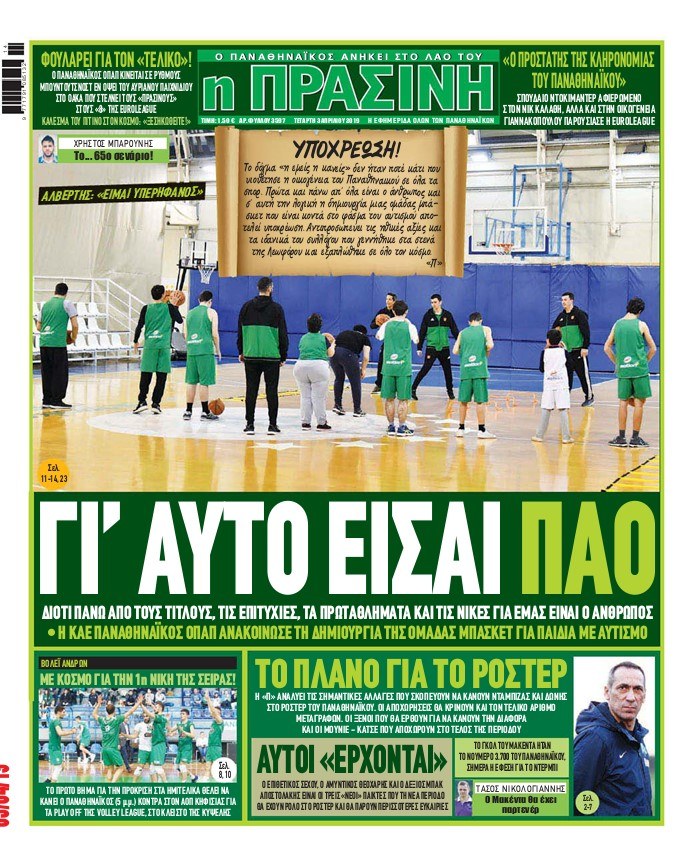 Δείτε τι αναφέρουν τα πρωτοσέλιδα των αθλητικών εφημερίδων, σε Αθήνα και Θεσσαλονίκη για την Τετάρτη 3 Απριλίου 2019