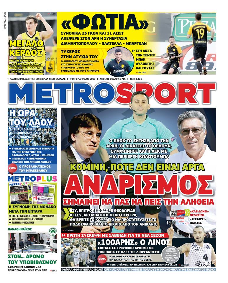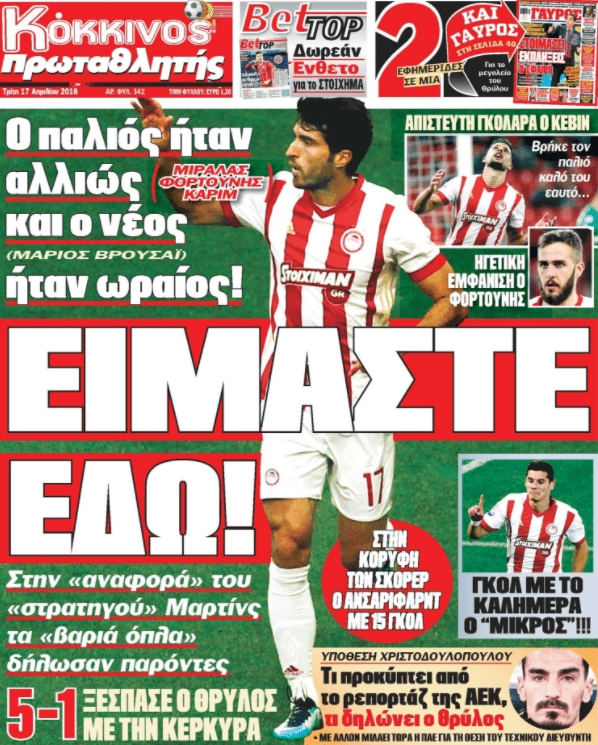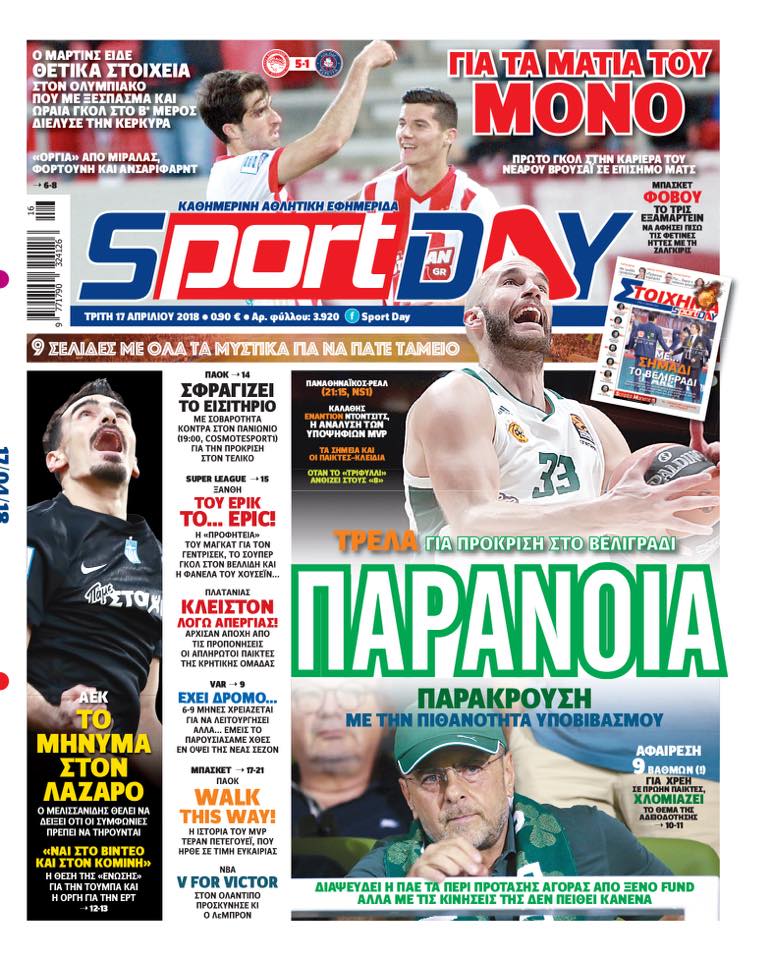 Δείτε τις πρώτες σελίδες του αθλητικού Τύπου την Τρίτη 17 Απριλίου