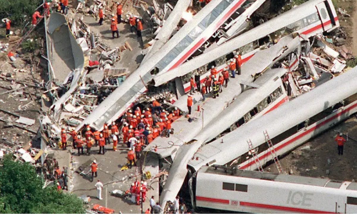 Η εκτροχίαση τρένου υψηλής ταχύτητας ICE στην Κάτω Σαξονία προκάλεσε 101 θανάτους. Το δυστύχημα αποδόθηκε σε τεχνική αστοχία.