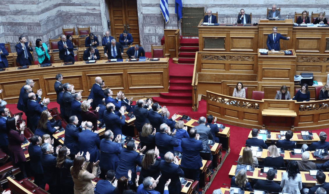 Τα χειροκροτήματα από τα «ματωμένα» χέρια που αποθέωναν τον μακελάρη των Τεμπών, Κώστα Αχ. Καραμανλή, έδωσαν σήμερα ακόμα ένα προκλητικό show στη Βουλή, αυτή τη φορά για να καταχειροκροτηθεί ο Κυριάκος Μητσοτάκης.