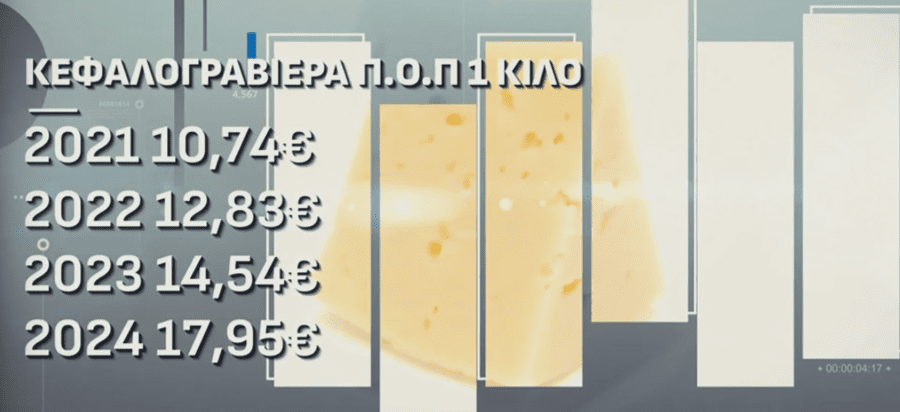 Μια κατηγορία τροφίμων που κατά κοινή παραδοχή έχει γίνει «χρυσή» από τα καρτέλ, είναι τα τυριά και γενικώς τα γαλακτοκομικά. Όλοι οι καταναλωτές συμφωνούν ότι οι τιμές στα τυριά έχουν γίνει εξωφρενικές και δεν υποχωρούν με τίποτα. Ο κ. Ραυτόπουλος σύγκρινε τις τιμές σε ένα συγκεκριμένο τυρί αποκαλύπτοντας ότι η τιμή του αυξήθηκε κατά 67,13% από το 2021 μέχρι σήμερα. Κεφαλογραβιέρα που από 10,74 ευρώ το κιλό, έφτασε τα 17,95 ευρώ το κιλό.