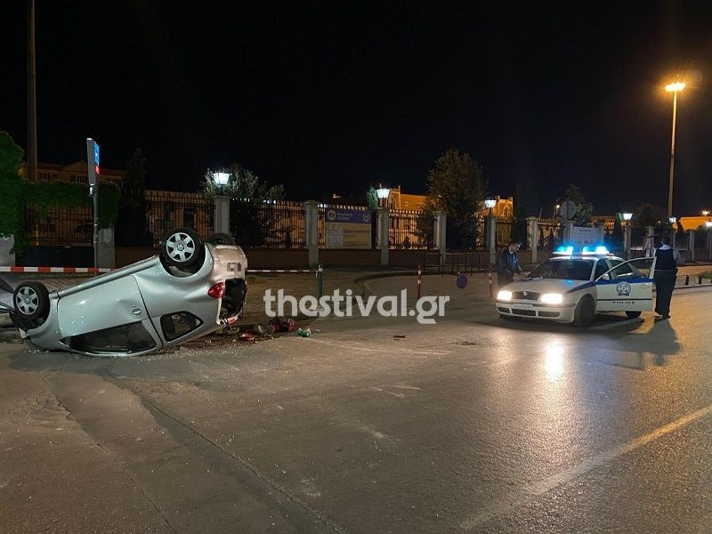Το αυτοκίνητο βγήκε από την πορεία του και κατέληξε σε κολόνα φωτισμού, αναποδογυρισμένο.