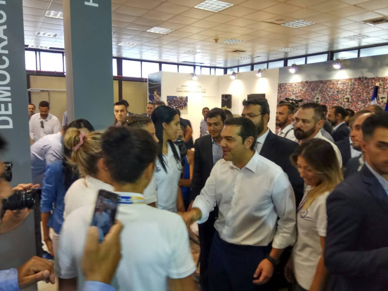 Στάση στο περίπτερο της ΓΓΑ έκανε στην ΔΕΘ ο Αλέξης Τσίπρας. Ο πρωθυπουργός αφού συναντήθηκε με τον υφυπουργό αθλητισμού, Γιώργο Βασιλειάδη και τον Γ.Γ, Ιούλιο Συναδινό, έκανε μια στάση στο περίπτερο όπου συναντήθηκε με τα κορίτσια της εθνικής ομάδας μπιτς χάντμπολ, που κατέκτησαν το χρυσό μετάλλιο στο παγκόσμιο πρωτάθλημα.