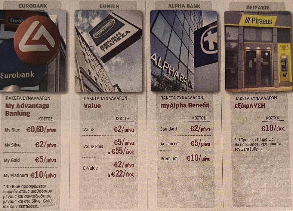 Οπως αναφέρει σε άρθρο της η «Καθημερινή της Κυριακής» και η δημοσιογράφος Ευγενία Τζώρτζη, οι τράπεζες ετοιμάζουν πάγιο από 0,60 έως και 10 ευρώ ανά μήνα για ιντερνετ και mobile banking αντί των εφάπαξ χρεώσεων.