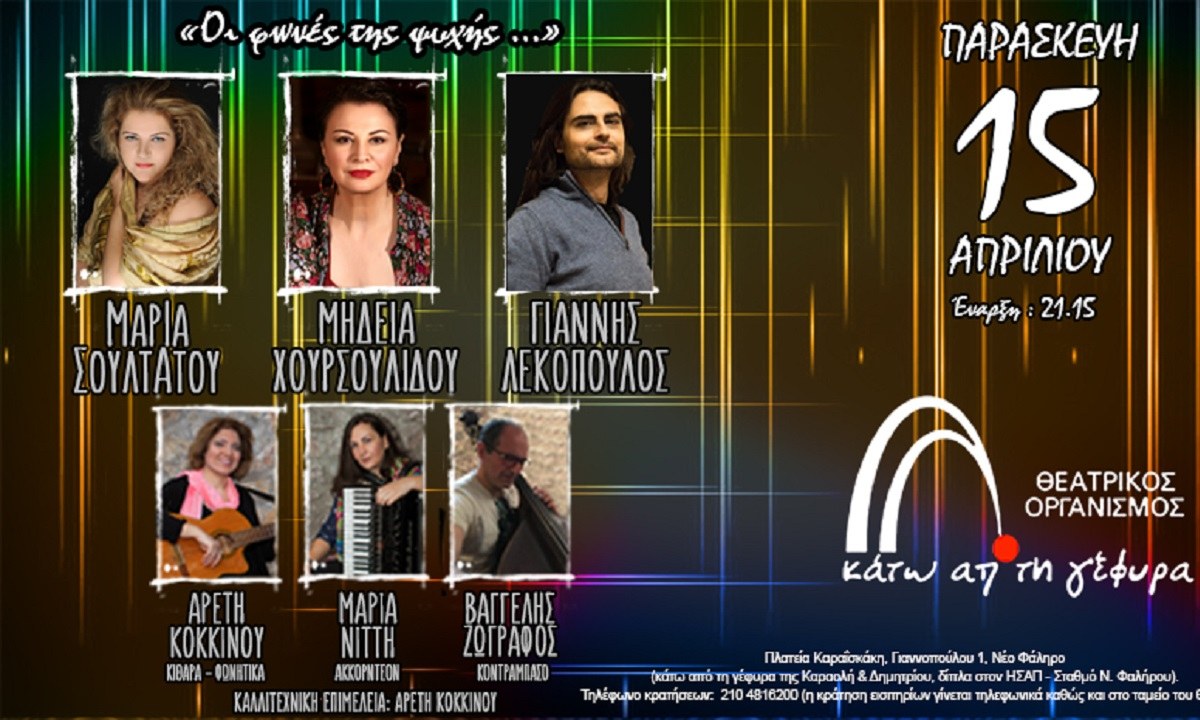 ερμηνεύτρια Μήδεια Χουρσουλίδου και τον αγαπητό ερμηνευτή Γιάννη Λεκόπουλο, την Παρασκευή 15 Απριλίου στο «Θέατρο Κάτω από τη γέφυρα», στον Πειραιά.