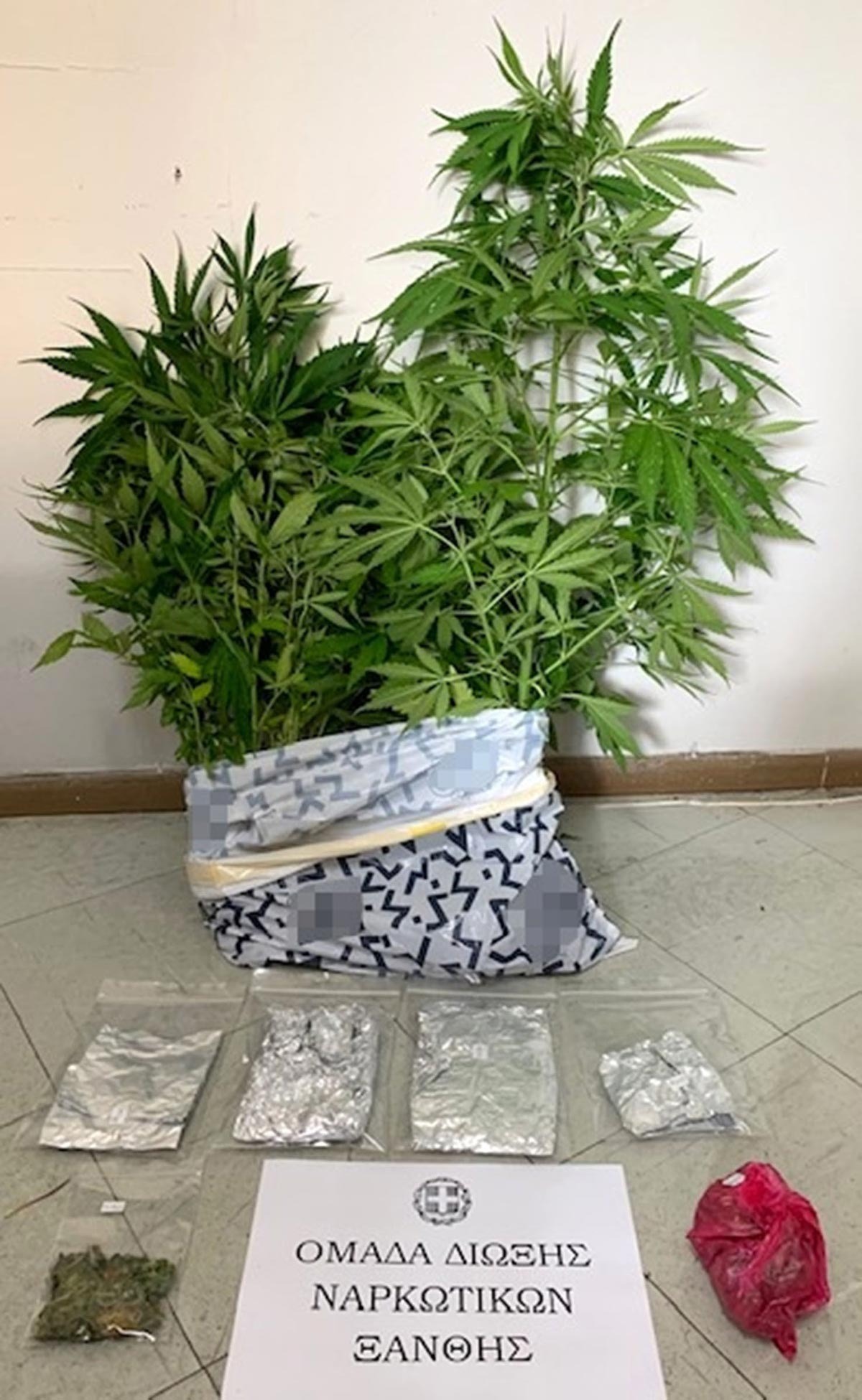 Ειδικότερα, στο πλαίσιο ερευνών που πραγματοποίησαν οι αστυνομικοί, με τη συνδρομή αστυνομικού σκύλου, εντόπισαν στην κατοχή και την οικία του δράστη: 18 φυτά κάνναβης, ύψους 30 εκατοστών έως 1 μέτρο, 6 συσκευασίες με κάνναβη, συνολικού βάρους 135,6 γραμμαρίων. Κατασχέθηκαν οι παραπάνω ποσότητες ναρκωτικών και τα φυτά κάνναβης.
