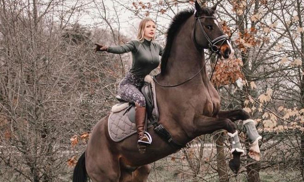 Με την κίνηση του αυτή, το άλογο άνοιξε την μπλούζα της ιδιοκτήτριας του την ώρα που εκείνη το χάιδευε χαρίζοντας ένα πλάνο που έγινε ανάρπαστο από τους θαυμαστές του μοντέλου καθώς αποκάλυψε το στήθος της.