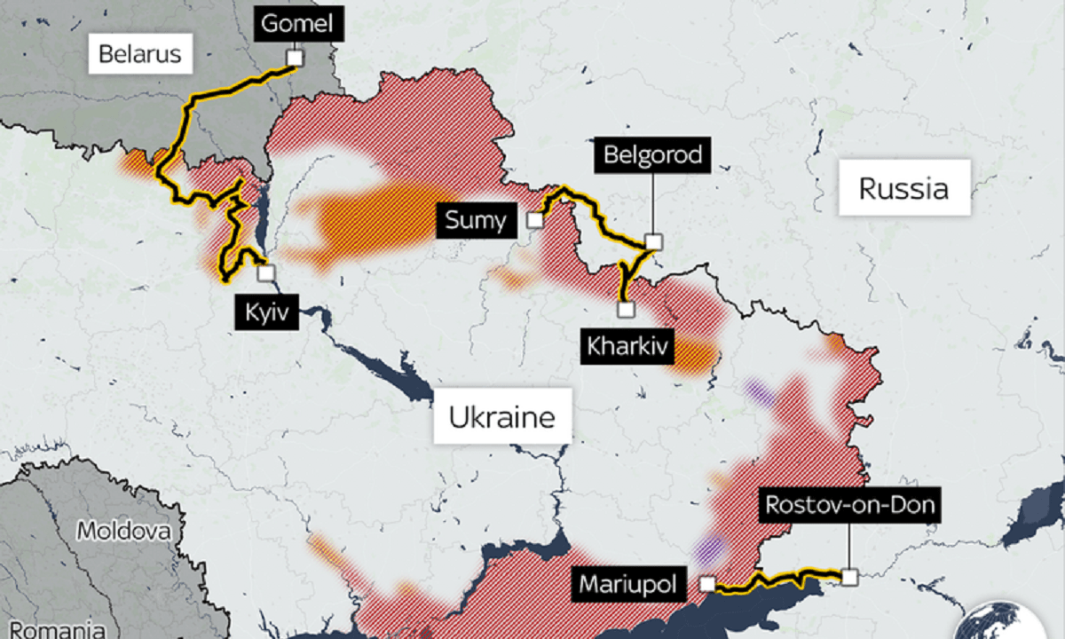 Δείτε τον χάρτη που δημοσιεύτηκε με τις κινήσεις των Ρώσων στρατιωτών στην Ουκρανία.