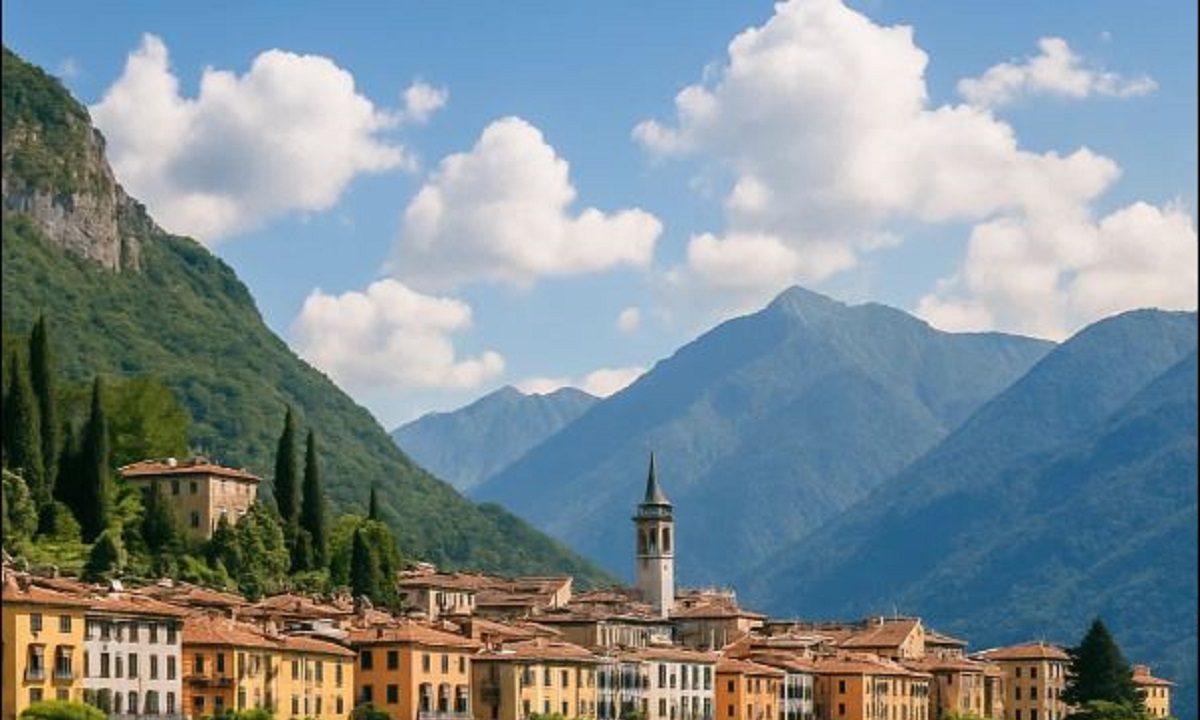 Το Lecco στο νοτιοανατολικό άκρο, το Bellagio: διάσημο τουριστικό θέρετρο στο σημείο όπου η λίμνη διαχωρίζεται σε τρία «σκέλη».
