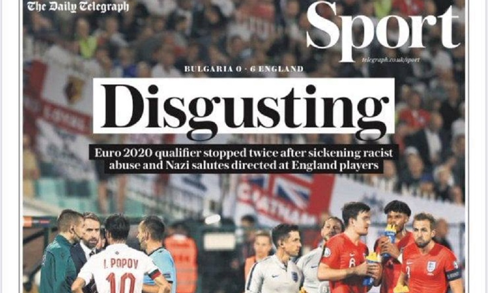 Σήμερα Τρίτης 15 Οκτωβρίου ξεχωρίζουν αναφορές στο παιχνίδι της Αγγλίας με τη Βουλγαρία, στο οποίο τα «λιοντάρια» επικράτησαν με το εμφατικό 6-0. Οι αναφορές εστιάζουν φυσικά στους ναζιστικούς χαιρετισμούς των Βούλγαρων οπαδών οι οποίες καταδικάζονται σφόδρα από το σύνολο του ευρωπαϊκού Τύπου.