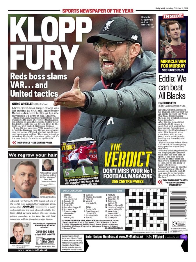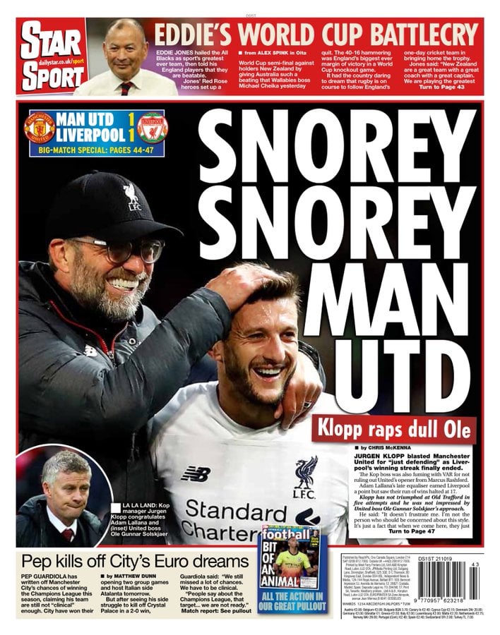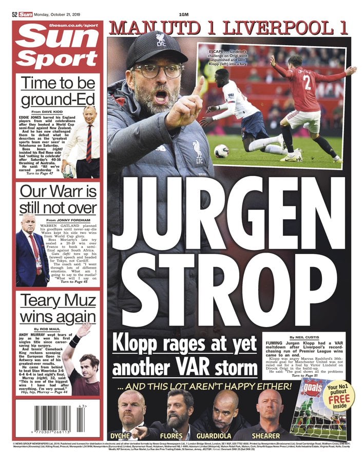 Συγκεκριμένα, στην Αγγλία, έχουμε πολλές αναφορές στο μεγάλο ντέρμπι ανάμεσα σε Γιουνάιτεντ και Λίβερπουλ, αλλά και στα παράπονα που έκανε ο Κλοπ μετά τον αγώνα.
