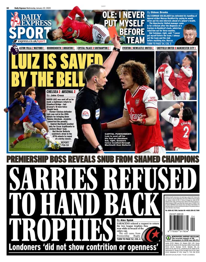 Ξένος Αθλητικός Τύπος (22/1): Το μεγάλο ντέρμπι του Λονδίνου ανάμεσα σε Τσέλσι και Άρσεναλ είναι αυτό που μονοπωλεί τον αθλητικό Τύπο στην Αγγλία.