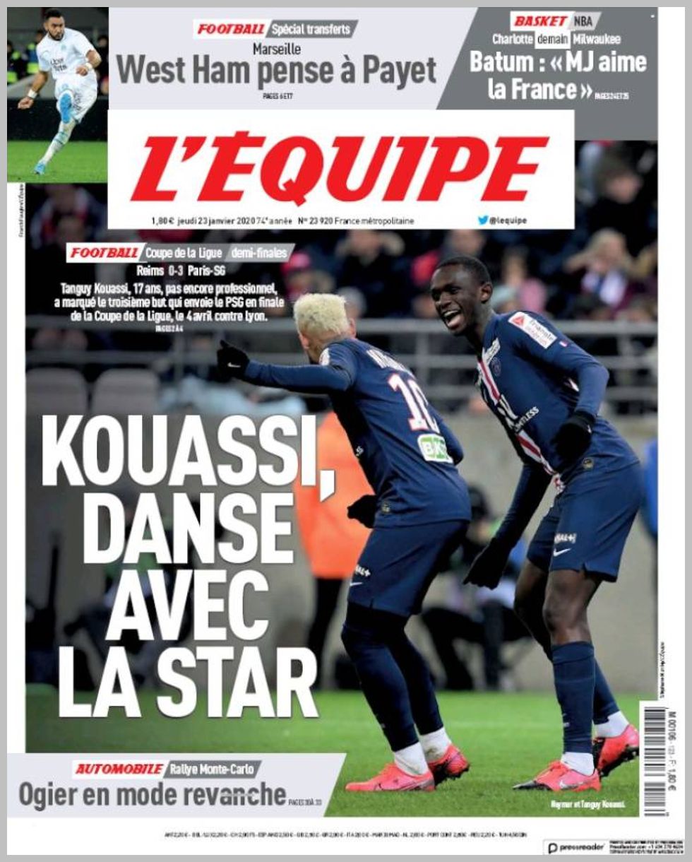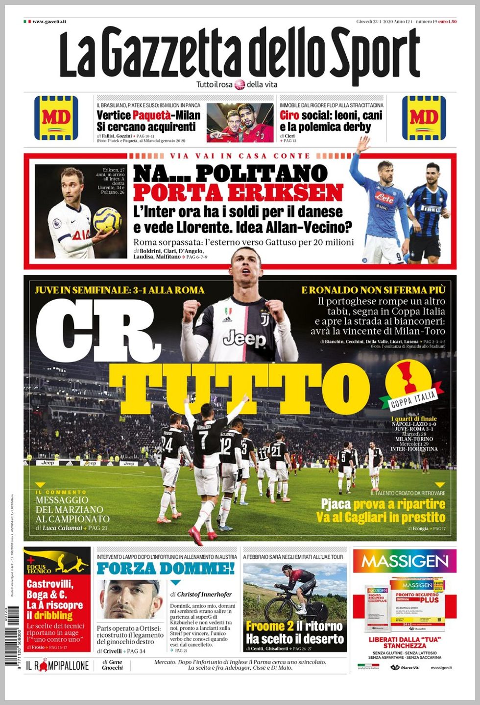 Από κει και πέρα, στην Ιταλία κυριαρχεί η πρόκριση της Γιουβέντους επί της Ρόμα στα ημιτελικά του Coppa Italia, ενώ στα γαλλικά ΜΜΕ υπάρχει ως πρώτο θέμα το 3-0 της Παρί επί της Ρεμς.