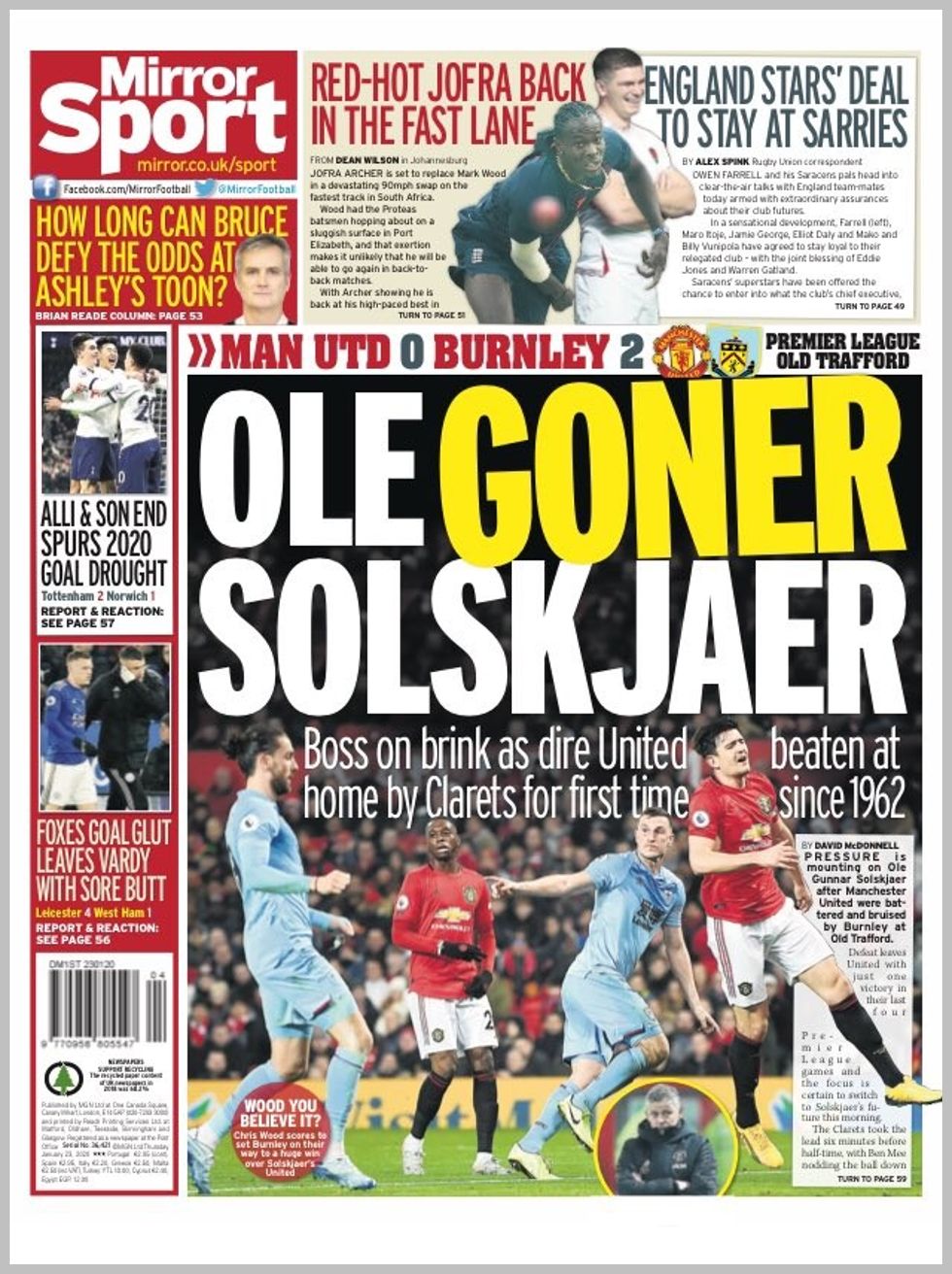 Ξένος Αθλητικός Τύπος (22/1): Ο θρίαμβος της Μπέρνλι στο «Ολντ Τράφορντ» απέναντι στην Μάντσεστερ Γιουνάιτεντ (0-2) μονοπωλεί τον αθλητικό Τύπο στην Αγγλία.