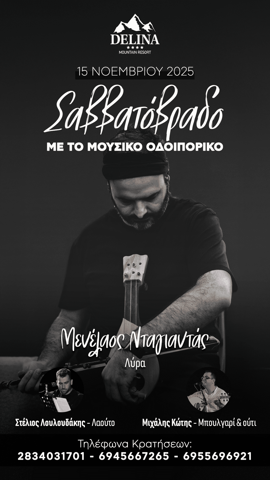 Ενδιάμεσα στις 15 Νοεμβρίου, πάντα στη «Ντελίνα», παρουσιάζεται «Σαββατόβραδο με το Μουσικό Οδοιπορικό» με πρωταγωνιστή τον Ανωγειανό λυράρη και ερμηνευτή Μενέλαο Νταγιανντά.