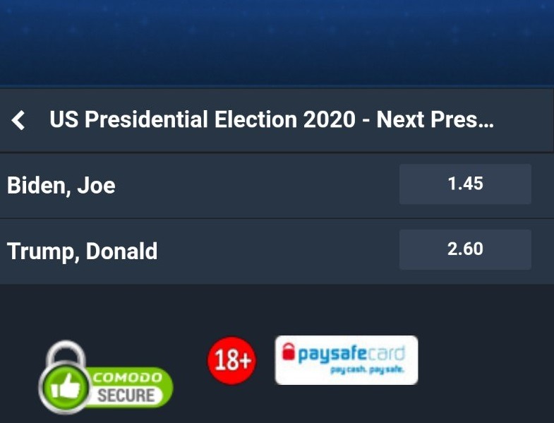 Η ανταγωνίστριά εταιρεία στην Βρετανία, William Hill, επίσης δίνει ως φαβορί τον Δημοκρατικό Μπάιντεν.