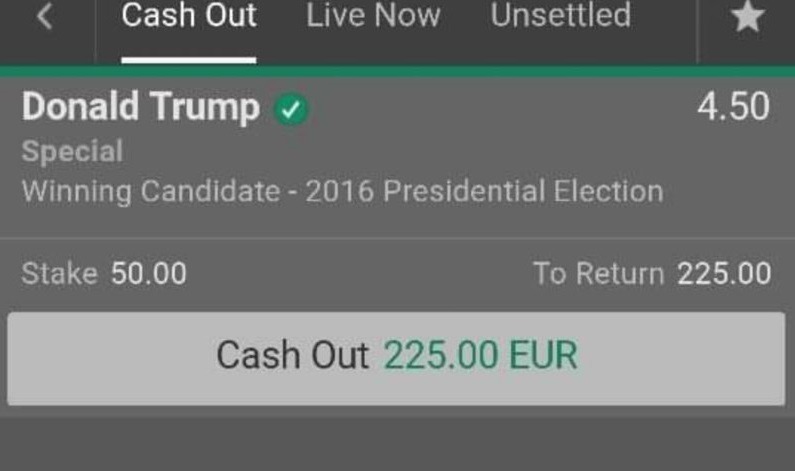 Άξιο αναφοράς είναι το γεγονός ότι αντιστοίχως την μέρα πριν τις αμερικανικές εκλογές του 2016 ο Τραμπ άφηνε αποδόσεις που κυμαίνονταν στο 4,50 και όσοι είχαν ρισκάρει στην εκλογή του αουτσάιντερ τότε είχαν εξαργυρώσει στο ταμείο 4,5 φορές τα αρχικά τους τζογαρίσματα.