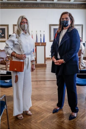 Η Ναντίν Αρσλανιάν έκλεψε τις εντυπώσεις κατά τη διάρκεια της επίσκεψης του γερουσιαστή στο Μέγαρο Μαξίμου με τον Κυριάκο Μητσοτάκη.