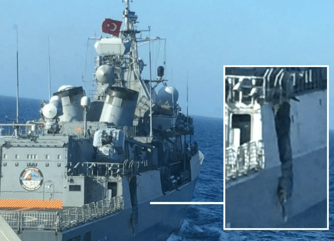 Πριν από τέσσερις μέρες ο stoxos.gr και σήμερα το protothema.gr αποκάλυψαν με φωτογραφίες την ζημιά που έχει πάθει το Kemal Reis μετά την επακούμβησή του με την ελληνική φρεγάτα Λήμνος.
