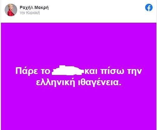 Η πρώην βουλευτής με ανάρτησή της στο Facebook ανέφερε: «Πάρε το π… και πίσω την ελληνική ιθαγένεια».