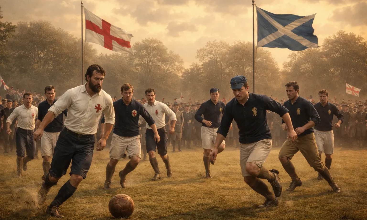 Είκοσι δύο ποδοσφαιριστές βγήκαν στον αγωνιστικό χώρο σε μια εποχή όπου το άθλημα βρισκόταν ακόμη στα πρώτα του οργανωμένα βήματα. Οι κανόνες δεν είχαν πλήρως καθιερωθεί και το ποδόσφαιρο παιζόταν κυρίως σε πανεπιστήμια και σχολεία της Βρετανίας. Ωστόσο, η ιδέα μιας αναμέτρησης ανάμεσα σε δύο «εθνικές» ομάδες άνοιξε έναν νέο δρόμο για την ανάπτυξη του αθλήματος.