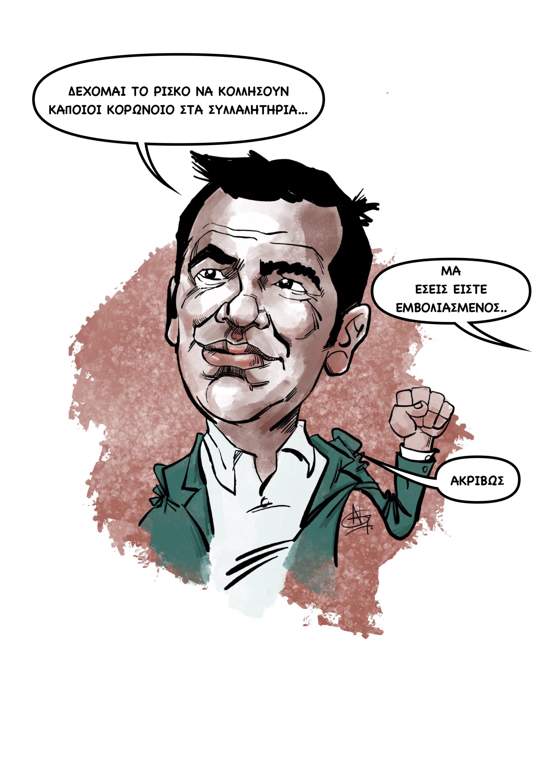 Πηγή έμπνευσης του καλλιτέχνη για το σκίτσο ο Αλέξης Τσίπρας, δίνοντας μία χιουμοριστική και καυστική ταυτόχρονα απάντηση, για τις απόψεις του Έλληνα πολιτικού.