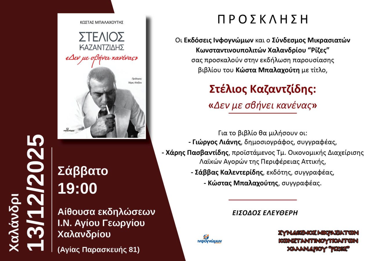 «Στέλιος Καζαντζίδης – Δεν με σβήνει κανένας» στο Χαλάνδρι με ελεύθερη είσοδο.
