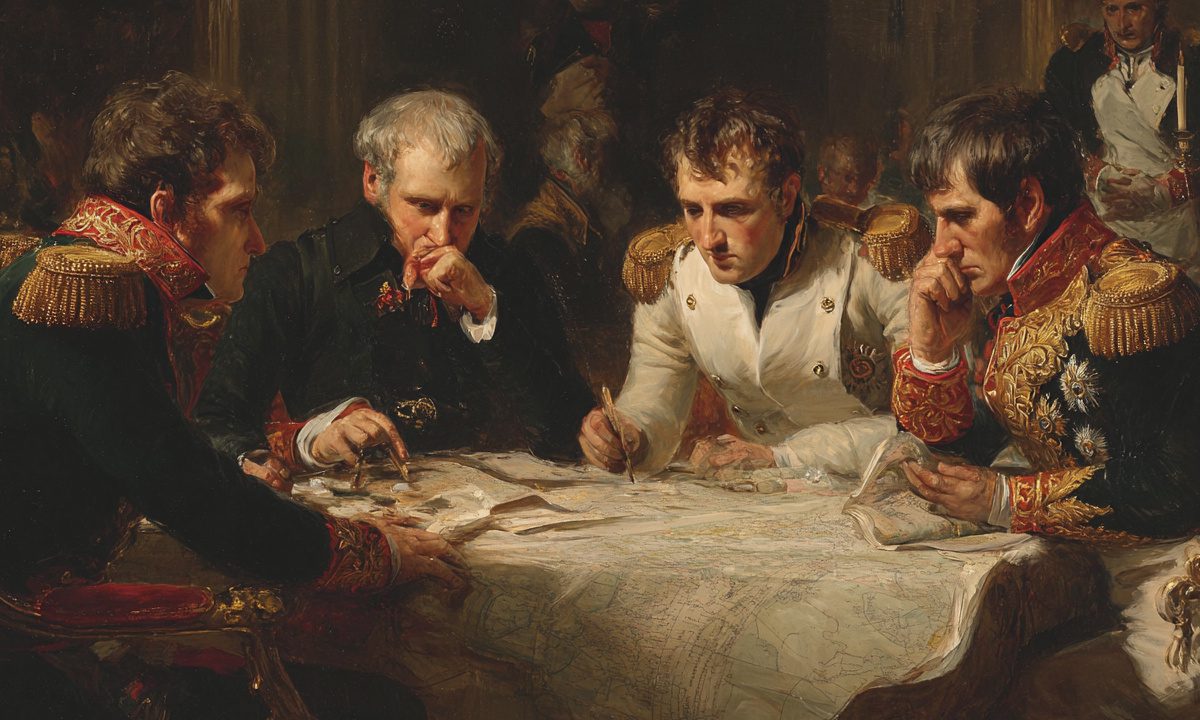 Ήταν Μάρτιος του 1815, όταν ο Ναπολέων Βοναπάρτης απέδρασε από την Έλβα. Οι δυνάμεις της Ευρώπης νόμιζαν πως τον είχαν τελειώσει. Μα η είδηση πως αποβιβάστηκε στις γαλλικές ακτές και προχωρούσε προς το Παρίσι, αλλάζοντας τον έναν στρατό μετά τον άλλον σε πιστούς του, προκάλεσε πανικό. Οι τέσσερις μεγάλες δυνάμεις — Αγγλία, Πρωσία, Ρωσία και Αυστρία — συγκεντρωμένες στο Συνέδριο της Βιέννης, πήραν μια απόφαση χωρίς ιστορικό προηγούμενο.