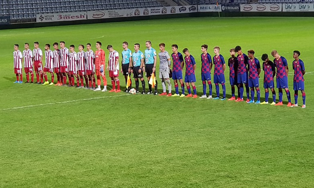Συγκεκριμένα οι Έφηβοι των «ερυθρόλευκων» συμμετέχουν σε τουρνουά στη Σλοβακία. Εκεί όπου την πρώτη ημέρα των αγώνων τους αντιμετώπισαν την Μπαρτσελόνα. Με την ομάδα του Δημήτρη Μαυρογενίδη να νικάει με 4-1!