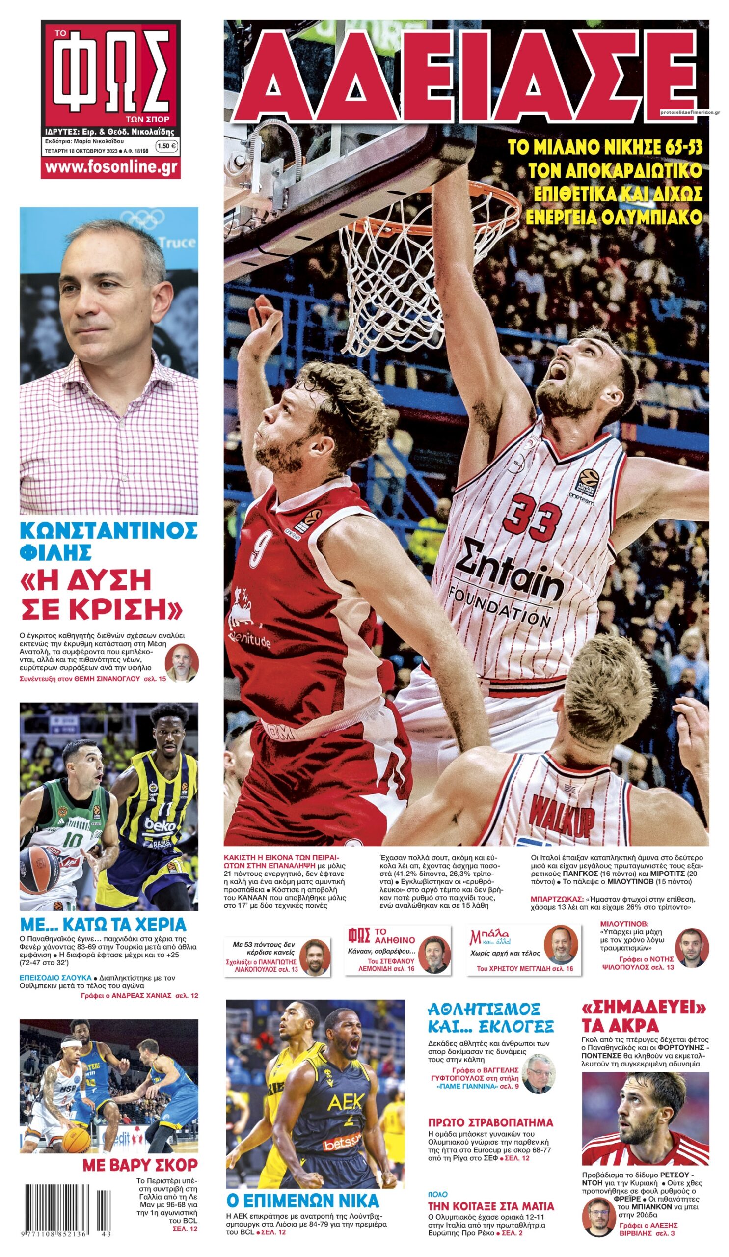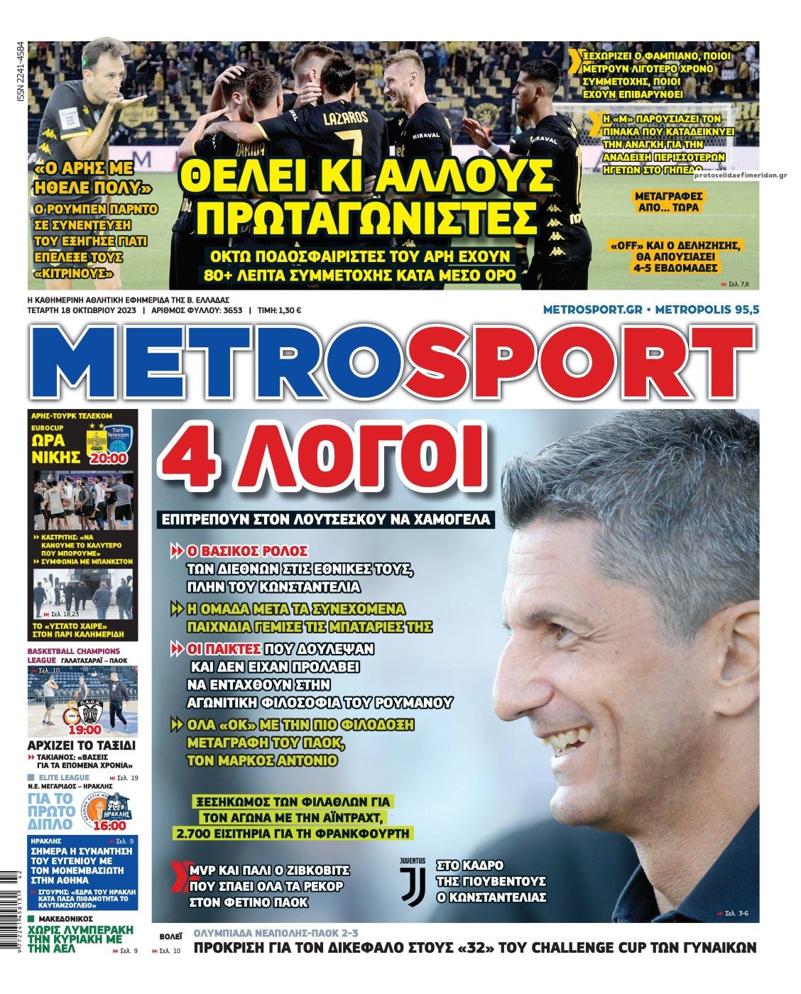 Πρωτοσέλιδα αθλητικών εφημερίδων για την Τετάρτη 18 Οκτωβρίου 2023