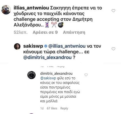 Όλα ξεκίνησαν από ένα σχόλιο του Δημήτρη Αλεξάνδρου κάτω από την φωτογραφία που είχε ανεβάσει ο Σάκης Τανιμανίδης με τα ξυρισμένα μούσια στο challenge του.