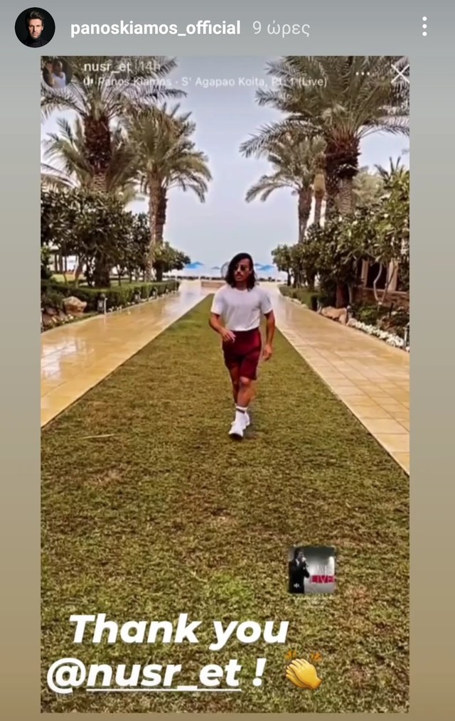 Από την πλευρά του, ο Πάνος Κιάμος ευχαρίστησε τον Νουσρέτ με μία αναδημοσίευση στο δικό του Instagram, στο οποίο δημοσιεύει ακυκλοφόρητα βίντεο, φωτογραφίες και προσωπικές του στιγμές.