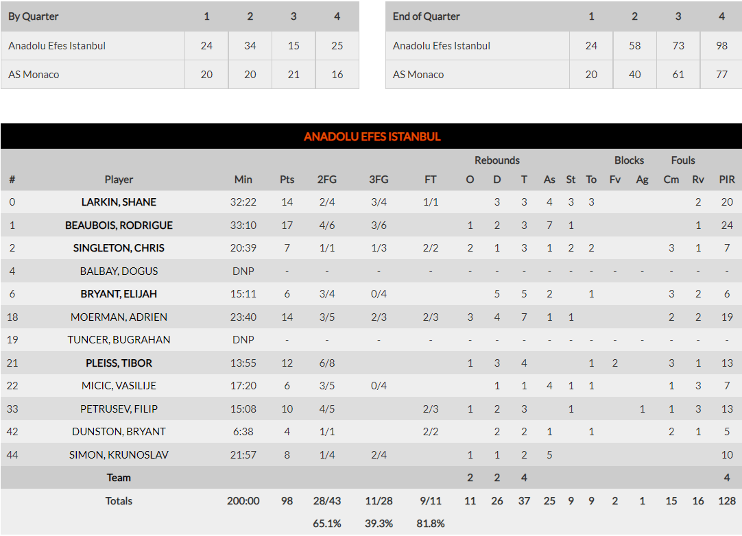 Αναντολού Εφές- Μονακό 98-77 (ΤΕΛΙΚΟ)