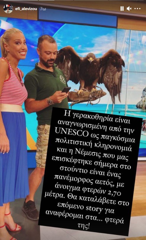 Συγκεκριμένα, η δημοσιογράφος που κάνει εκπομπή μαζί με τον Γιώργο Γρηγοριάδη, είχαν καλεσμένο έναν ιδιαίτερο καλεσμένο. Συγκεκριμένα, υποδέχθηκαν στο πλατό έναν υπέροχο χρυσαετό, το όνομα του οποίου είναι Νέμεση.