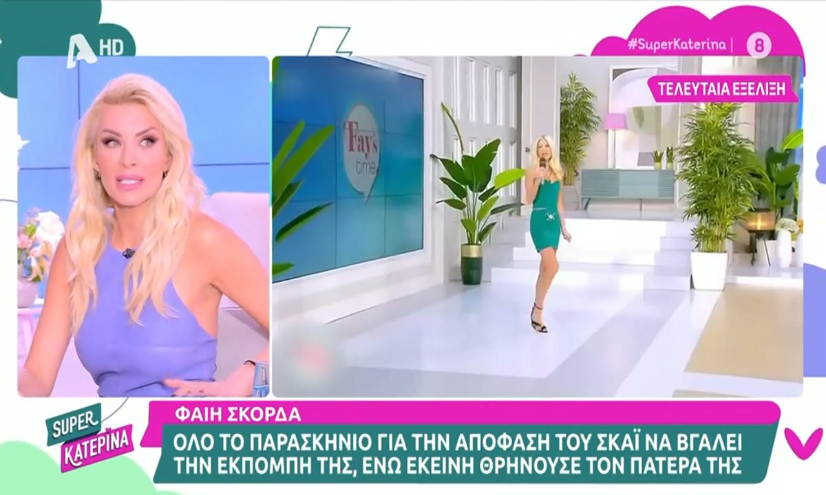 Έξαλλη φάνηκε η παρουσιάστρια της εκπομπής Super Κατερίνα, Κατερίνα Καινούργιου που θέλησε να σχολιάσει μέσα από τον αέρα του ALPHA, τα όσα είπε ο Δημήτρης Ουγγαρέζος για τη Φαίη Σκορδά και την απόφαση του ΣΚΑΪ να βγει η εκπομπή παρόλο που η ίδια απουσίαζε λόγω πένθους.