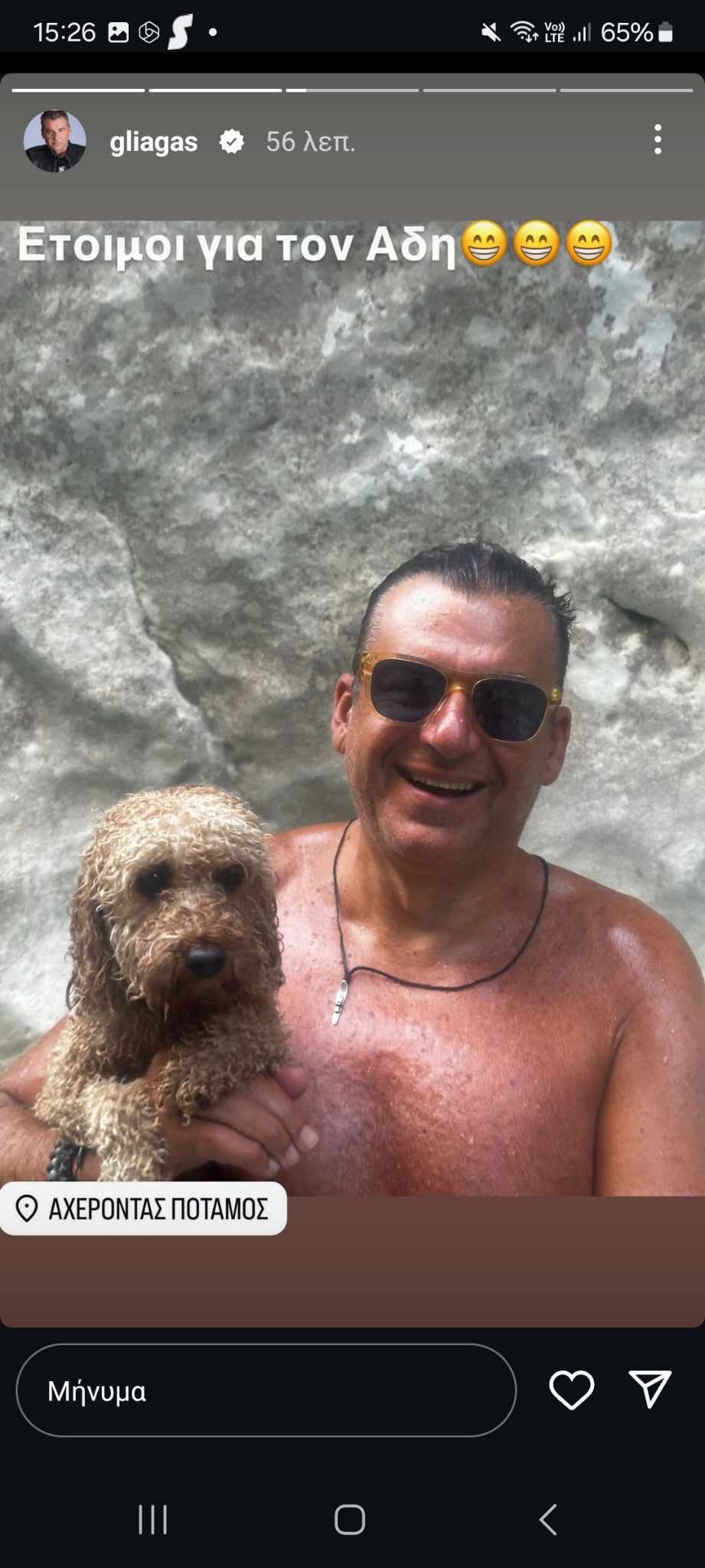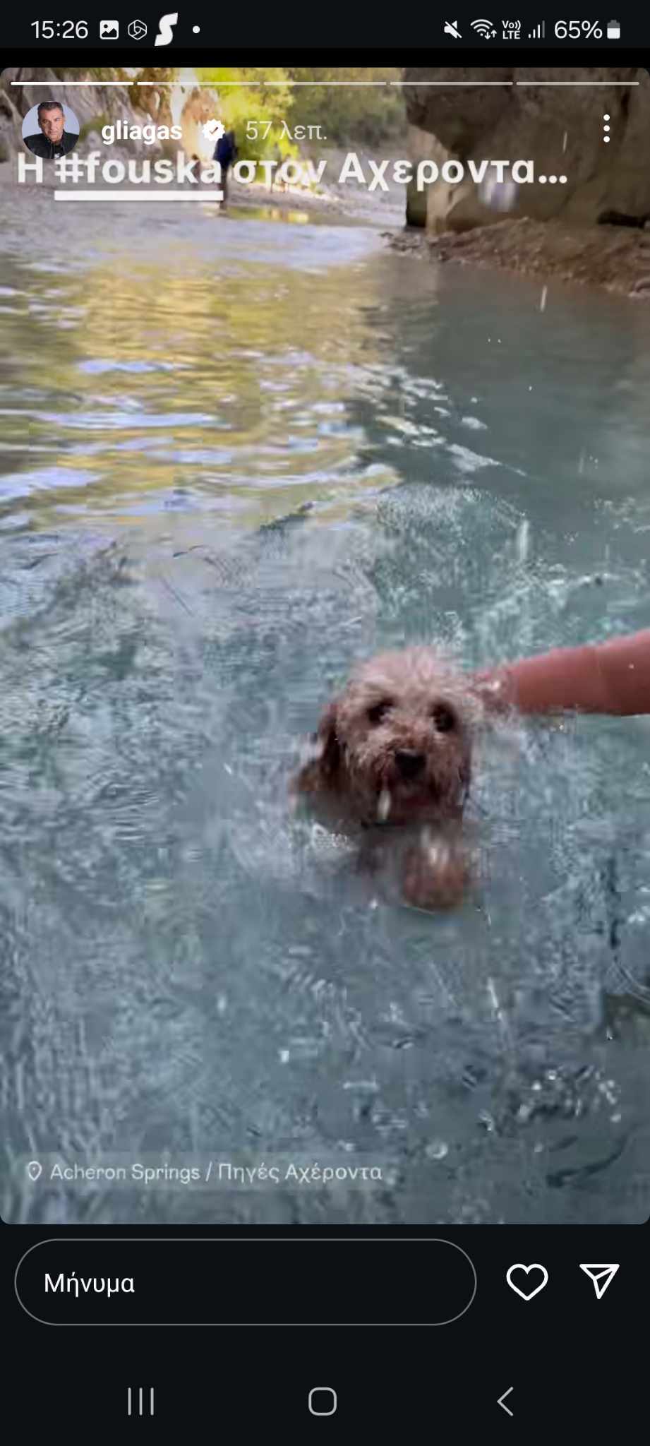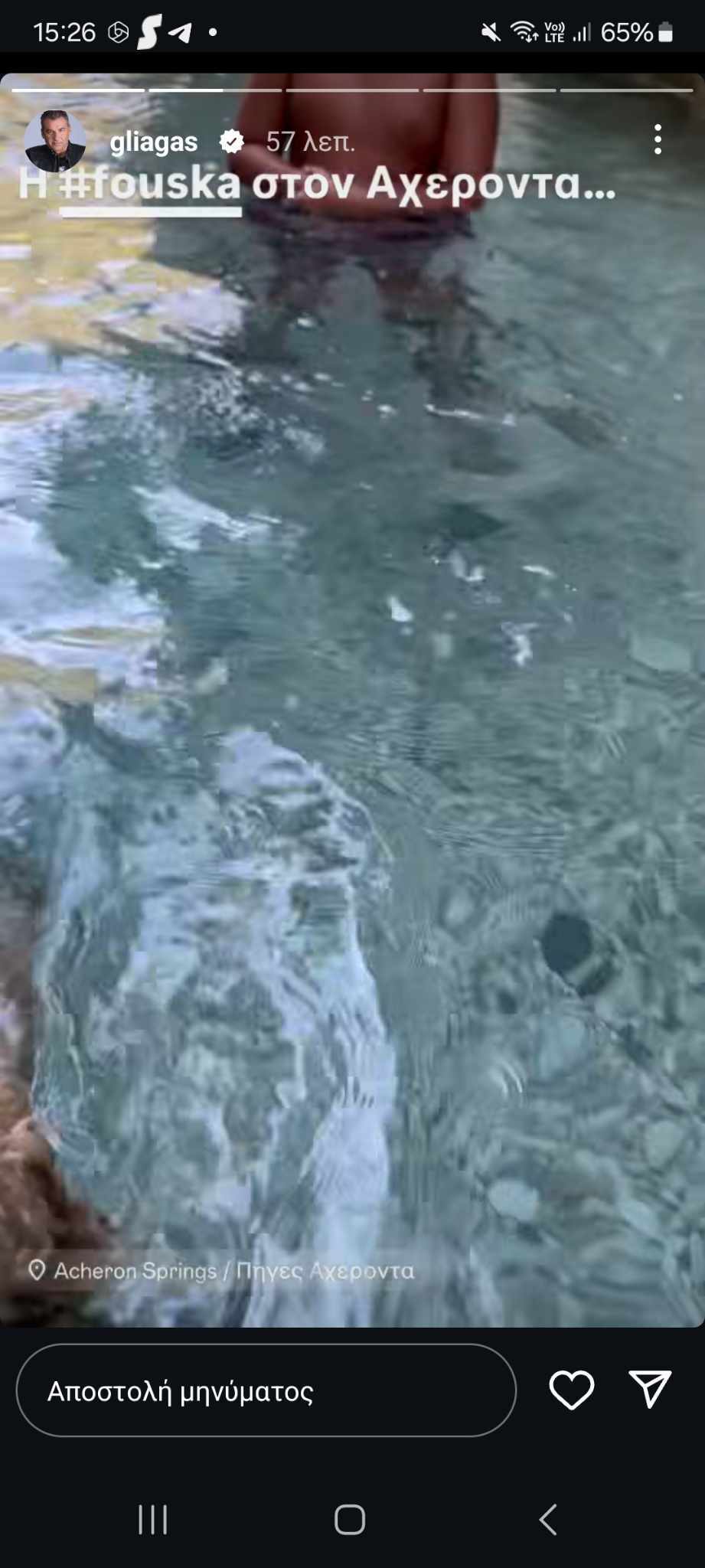 Ο γνωστός παρουσιαστής έκανε μπάνιο στα δροσερά νερά του Αχέροντα ποταμού, ο οποίος έχει συνδεθεί από την αρχαιότητα με το θάνατο -εξ ου και η ονομασία «ποταμός του θανάτου».