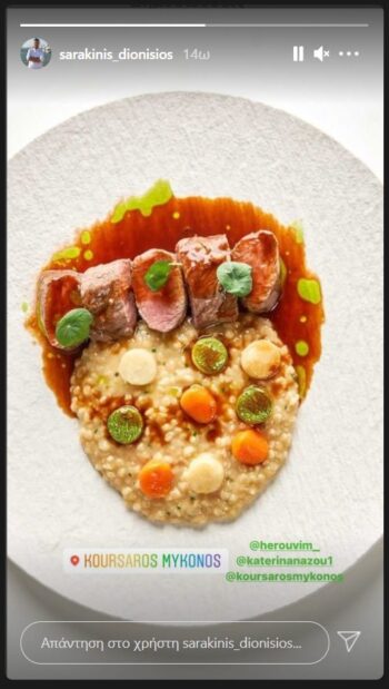 Ο Διονύσης από ότι φαίνεται εργάζεται αυτή την σεζόν στο νησί των ανέμων, την Μύκονο. Πιο συγκεκριμένα, βρίσκεται ως Σεφ στο εστιατόριο KOURSAROS MYKONOS.