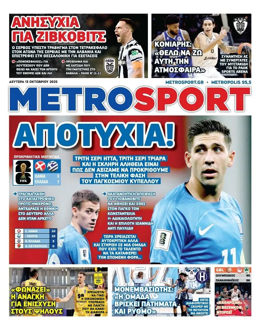 Πρωτοσέλιδα αθλητικών εφημερίδων για τη Δευτέρα 13 Οκτωβρίου 2025.