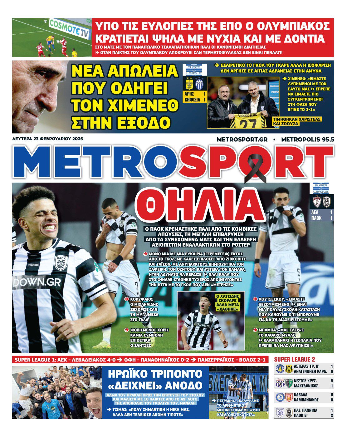 Πρωτοσέλιδα αθλητικών εφημερίδων για τη Δευτέρα 23 Φεβρουαρίου 2026