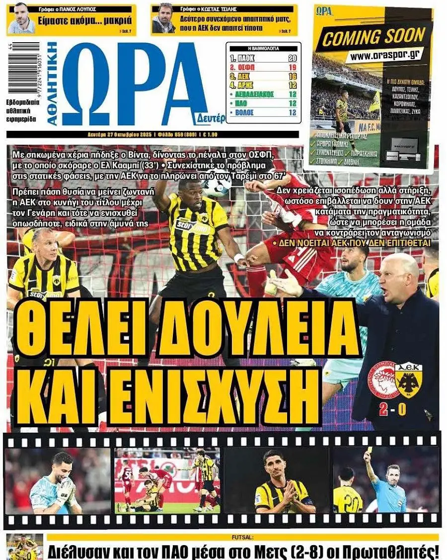 Πρωτοσέλιδα αθλητικών εφημερίδων για τη Δευτέρα 27 Οκτωβρίου 2025