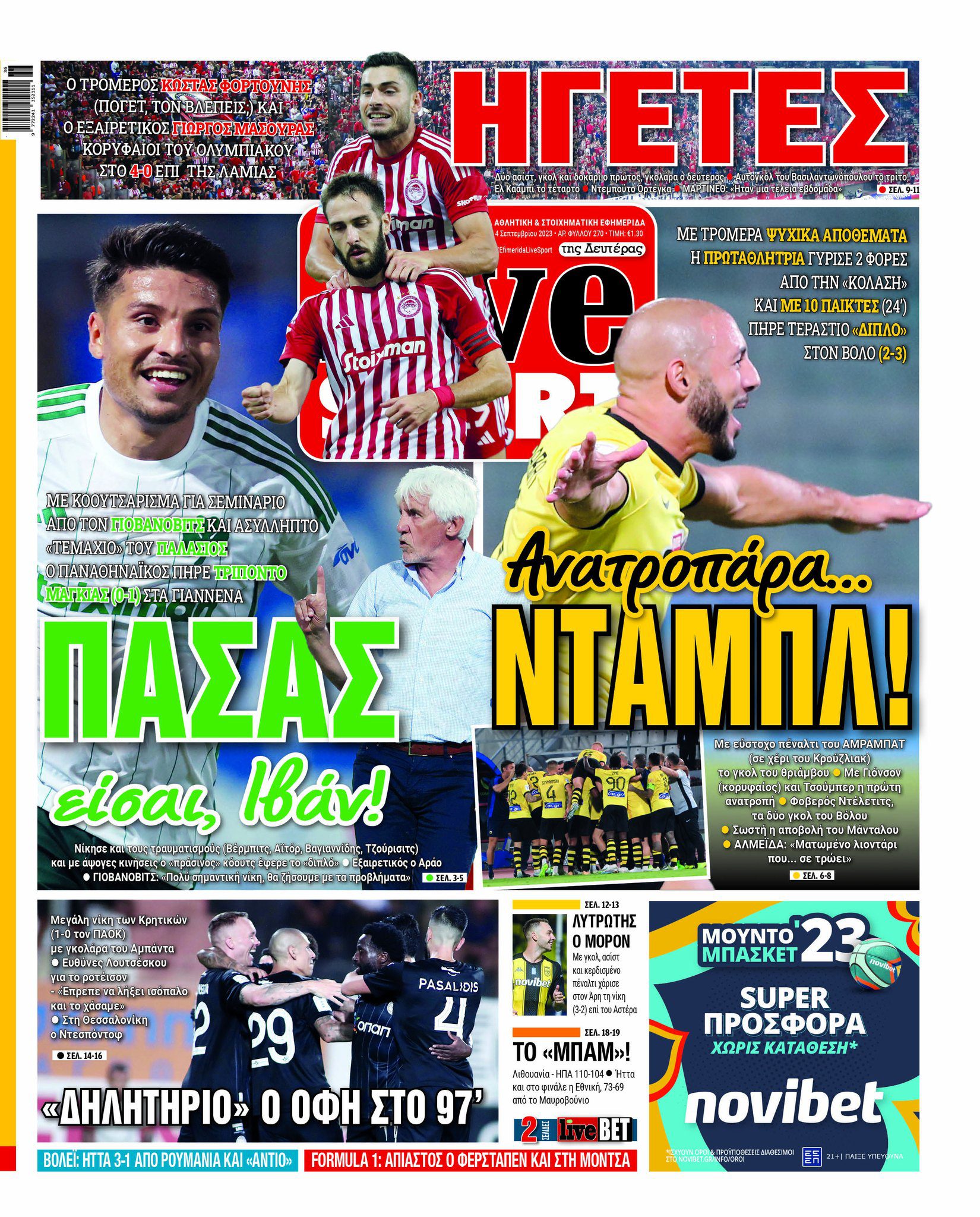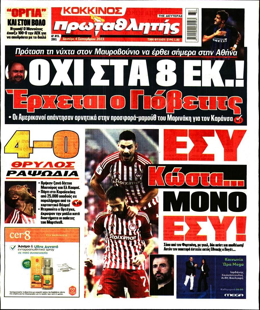 Πρωτοσέλιδα αθλητικών εφημερίδων για τη Δευτέρα 4 Σεπτεμβρίου 2023