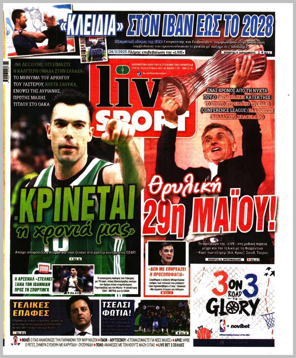 Δείτε αναλυτικά τι αναφέρουν τα πρωτοσέλιδα των αθλητικών εφημερίδων για την Δευτέρα 29 Μαΐου 2025